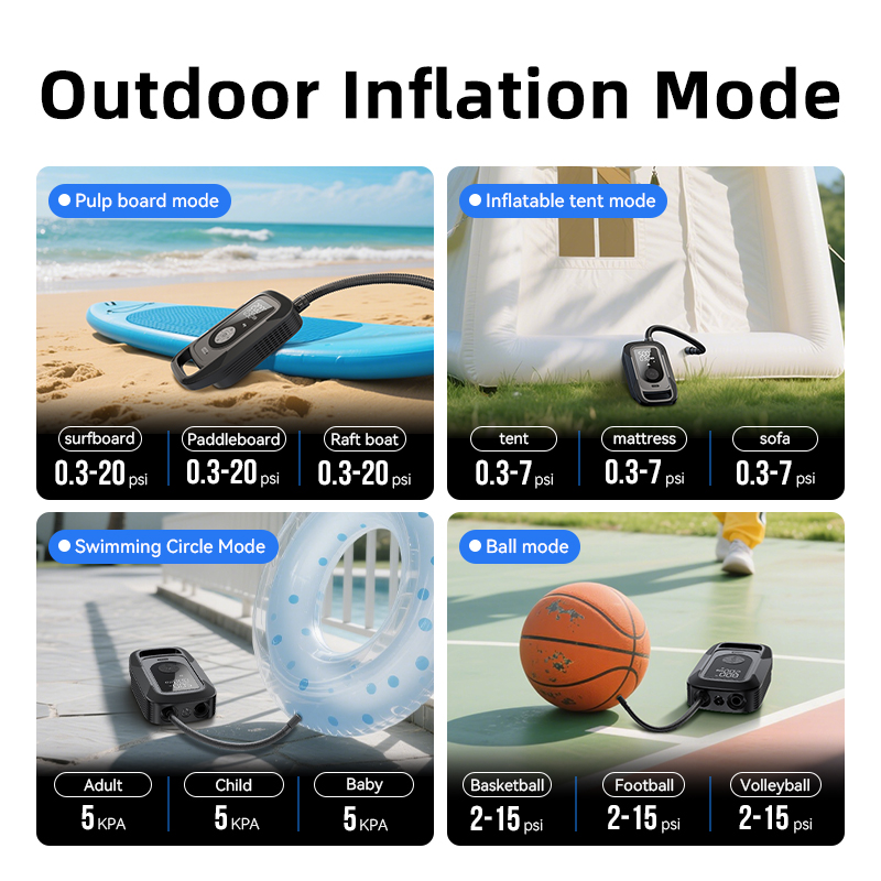 Pre-Set Modes: Quickly select from pre-programmed modes for different items (e.g., SUP, Car, Bike) for foolproof operation.