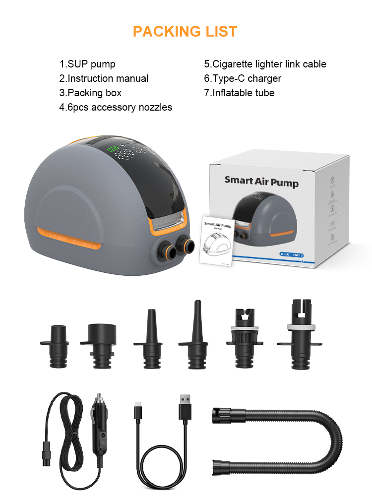 It has 4 5000mAh*3 large-capacity batteries, which can inflate multiple inflatable paddle boards continuously, without worrying about running out of power.